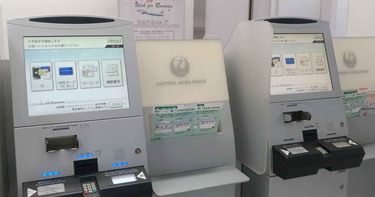 最初の区間の出発空港と乗り継ぎ空港とで更新前と後のシステムが混在している場合、自動チェックイン機(キオスク端末)やタッチアンドゴーではうまくできません。